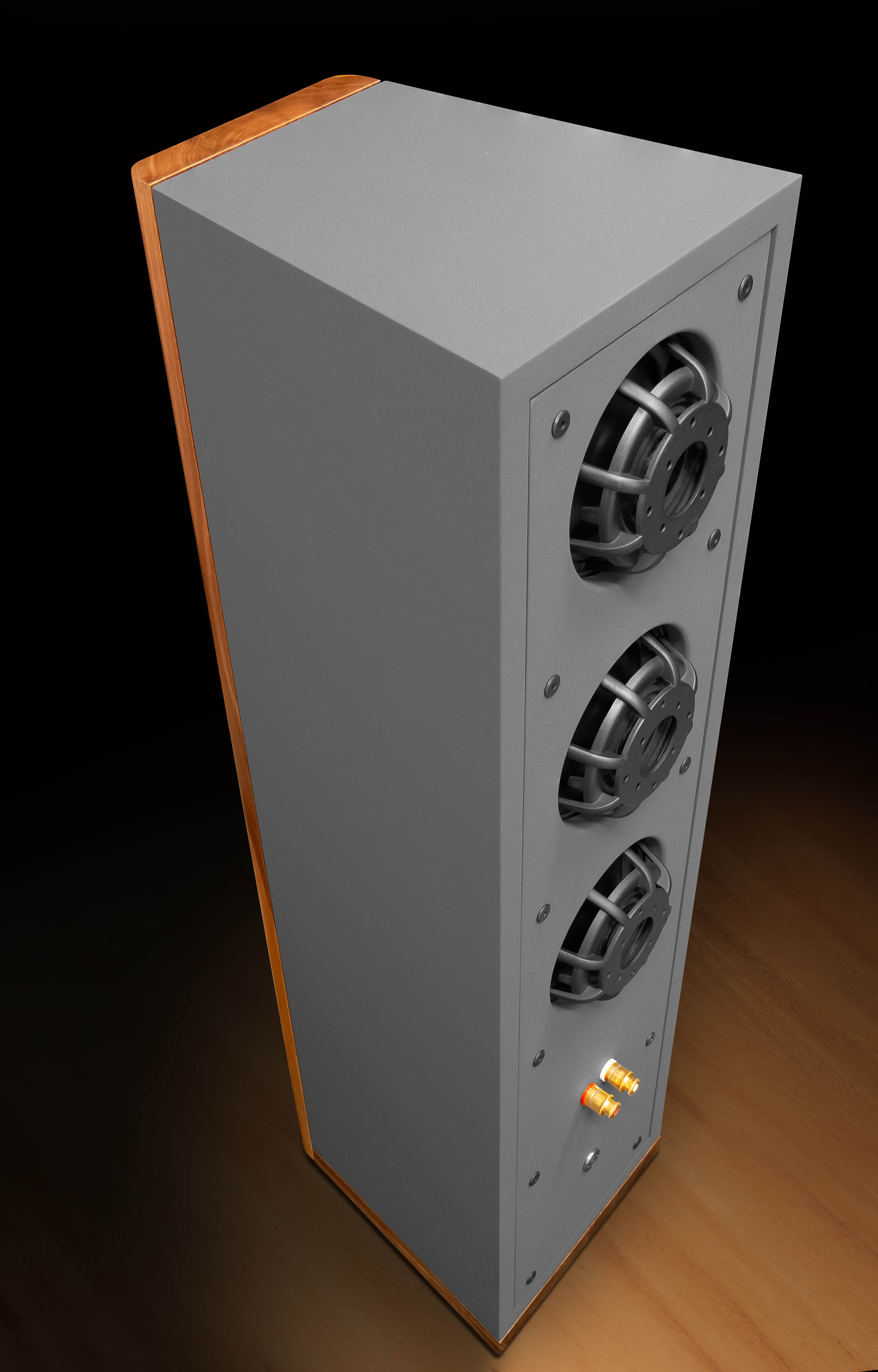 Aufgrund des raffinierten Schallwanddesigns bei dem die Chassis auf kleinstem Raum in einer D'Appolito-Anordnung arrangiert sind, kombiniert mit einer niedrigen Trennfrequenz zwischen Hoch- und Tiefmitteltönern, ist ein minimaler Hörabstand von eineinhalb Metern möglich.