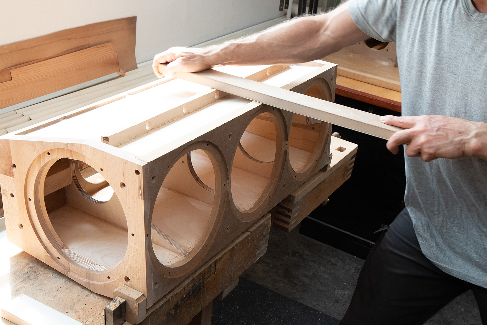 In filigraner Handarbeit entstehen so unverwechselbare Lautsprecher, die höchste Ansprüche an Klang und Design in sich vereinen.