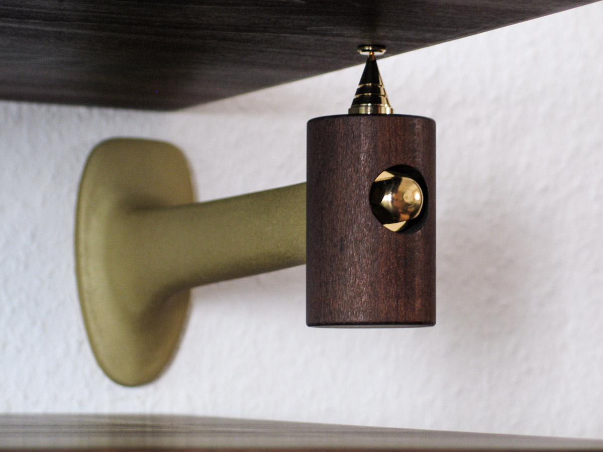 Dieser sogenannte Trittschall lässt sich am wirksamsten beseitigen, wenn der physische Kontakt zur Bodenfläche vollständig vermieden wird. Die größte Herausforderung einer solchen Konstruktion ist dabei, hohe Stabilität mit einer komfortablen Adjustierbarkeit zu kombinieren. Dass diese Umsetzung darüber hinaus in einem edlen Design ausgeführt ist, unterstreicht den hohen ästhetischen Anspruch von Klangheims Audio-Plattform.