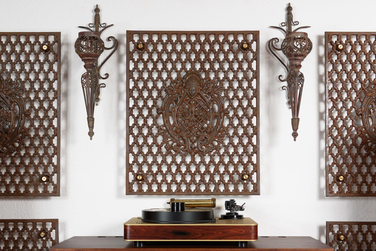 Der Klangheim Audio-Diffusor besteht aus schwerem Grauguss und ist in verschiedenen antiken Designs erhältlich. Für ein überzeugendes Ergebnis ist es unerlässlich, die Anzahl und die Platzierung der Audio-Diffusor-Elemente exakt zu bestimmen.